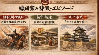 織田信長を中心とする織田家は、戦国大名の中でも革新性で人気があります。鉄砲の大量運用や楽市楽座などの経済政策、比叡山焼き討ちなどの強硬策で知られます。1560年の桶狭間の戦いで今川義元を破り台頭。安土城築城など新しい文化も生み出し、「天下布武」を掲げた点が大きな特徴です。