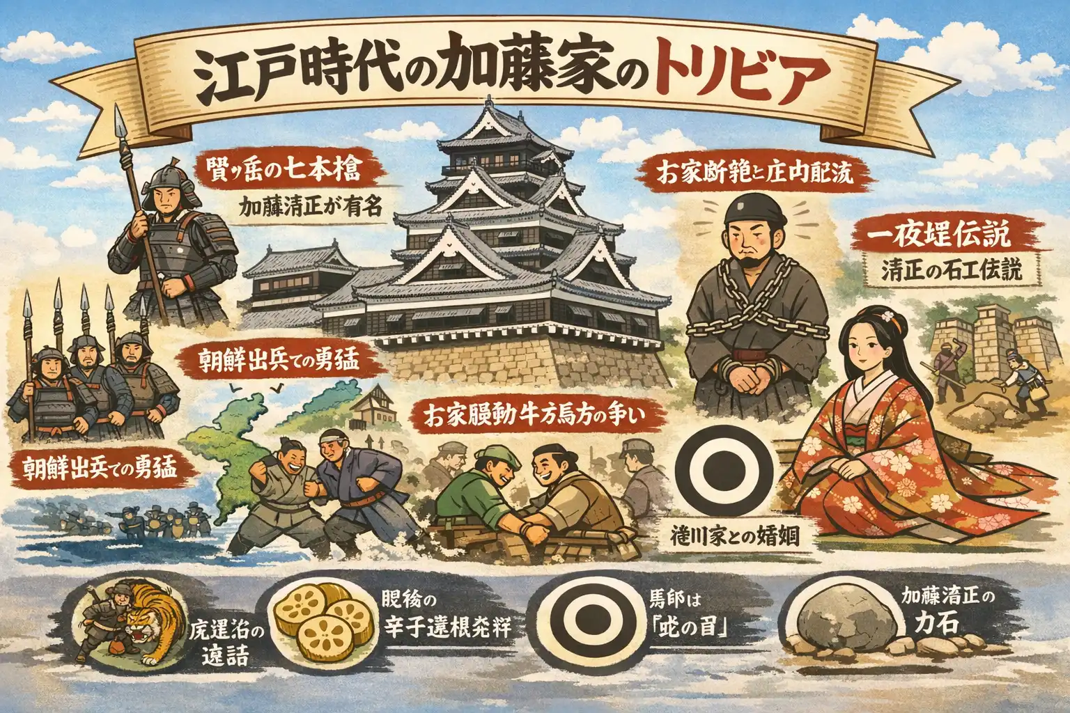 加藤清正を祖とする加藤家は、関ヶ原の戦い後に肥後熊本藩を治めた外様大名である。築城名手として知られる清正のもとで領国は発展したが、子の加藤忠広の代に家臣対立や統治不安が深刻化。最終的に改易となり加藤家は断絶し、江戸幕府による大名統制の象徴的事例となった。